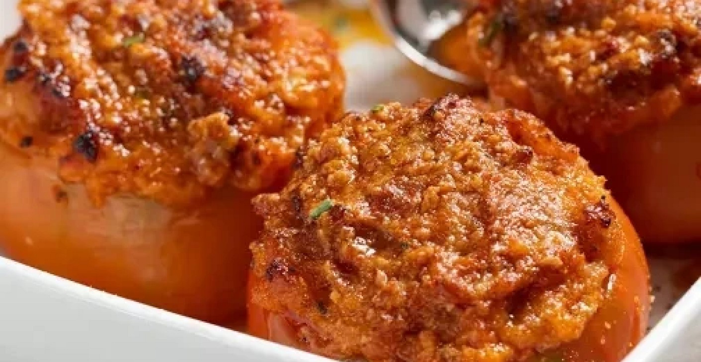 Tomatoes are not just a summer food eaten cold. They can also be wonderfully cooked in a pan or in the oven, such as this delicious meat-filled version.